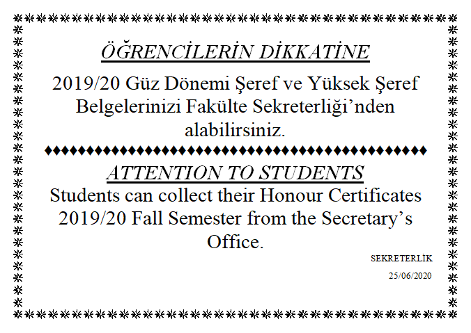 ANNOUNCEMENT OF HONOUR CERTIFICATE